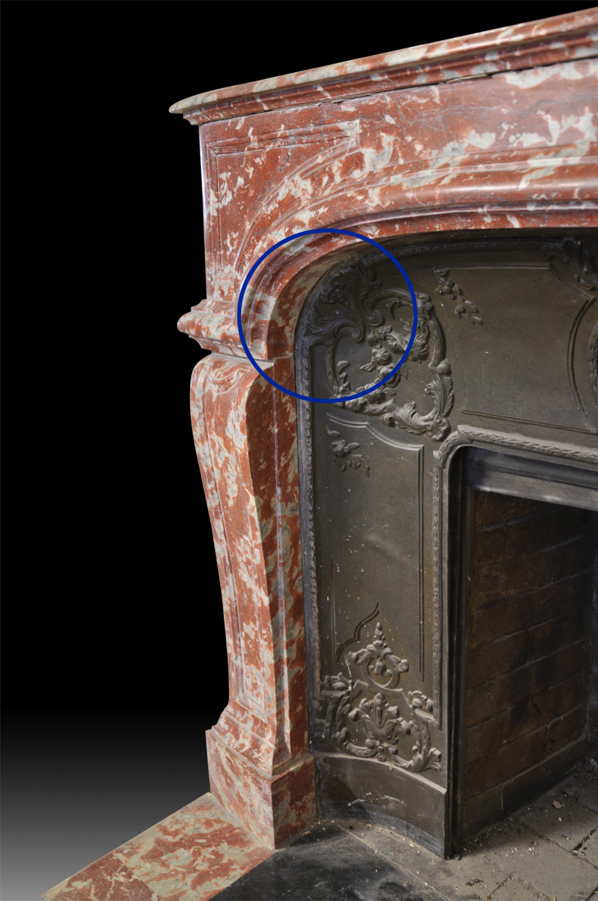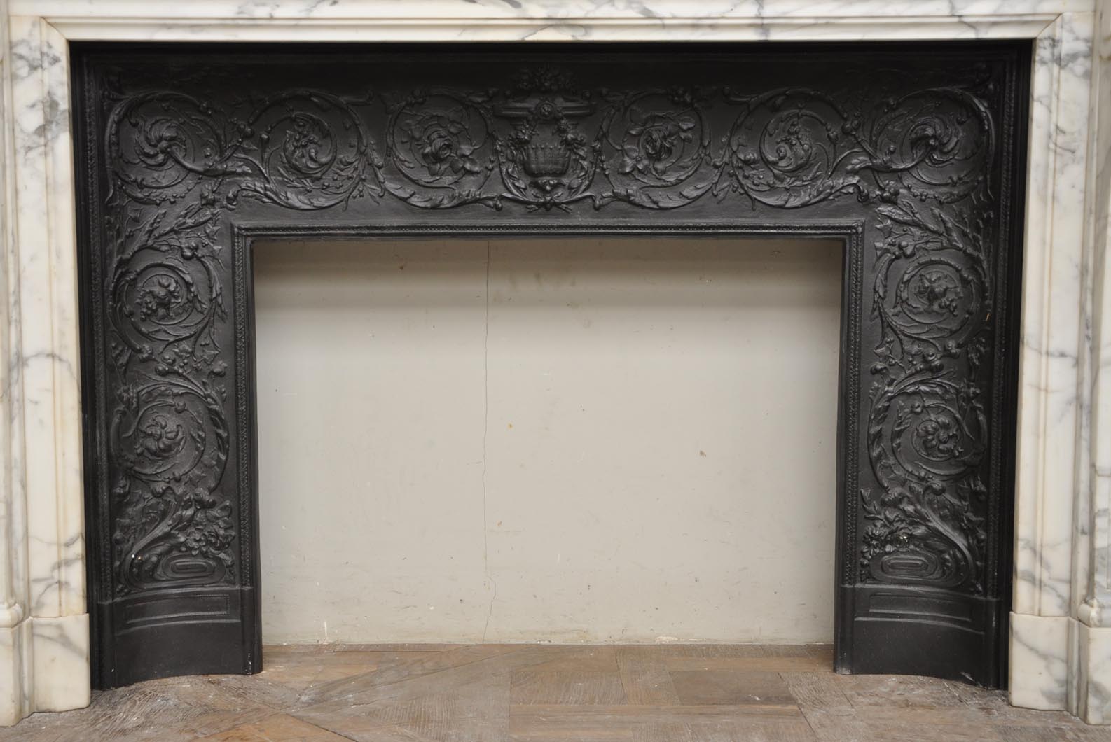 К некоторым старинным каминам прилагаются оригинальные чугунные внутренние вставки. Эти вставки часто богато украшены лиственными орнаментами, волютами и распустившимися цветами.